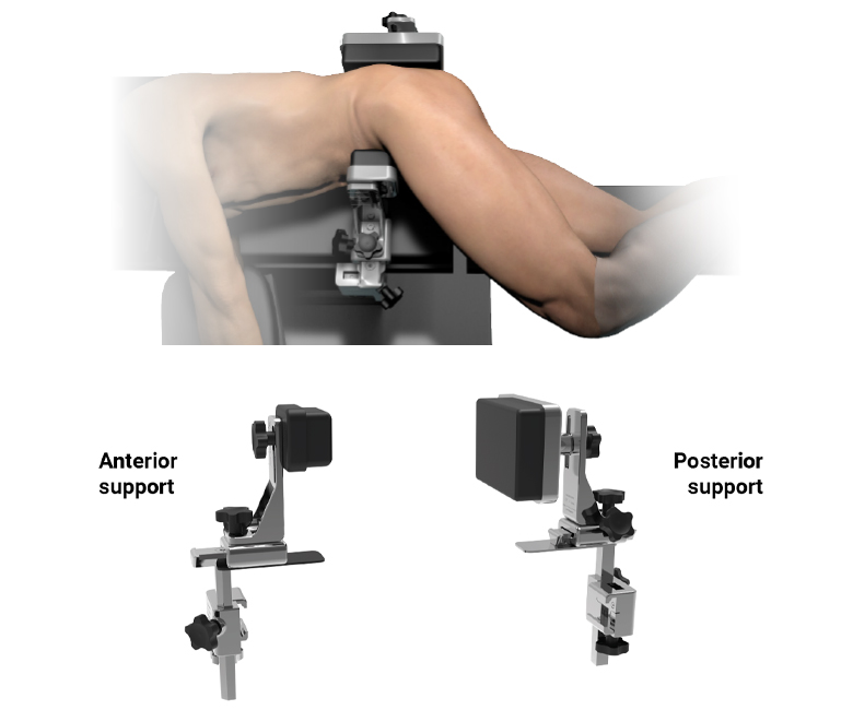 The Medacta Patient Positioner allows for a stable and reproducible positioning of the patient through the entire surgery and for an easy and reliable leg length assessment. The Medacta Patient Positioner is composed by two fully adjustable supports (length, height, rotation); the posterior one is in contact with the sacrum and the anterior one is in contact with the pubis.