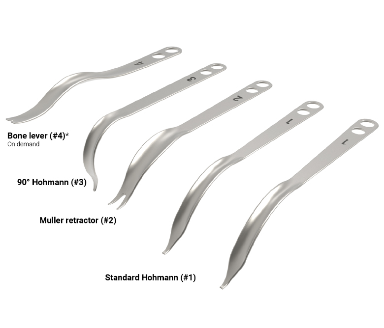 An optimized set of only four retractors* designed for logical, sequential use to streamline the surgical workflow. Clearly numbered for ease of use – for the entire procedure.